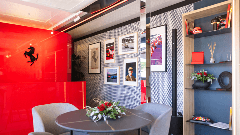 Accueillis dès le matin au sein de la Casa Ferrari, nos invités ont pu profiter d’une expérience immersive dans une atmosphère raffinée et conviviale autour de la marque au Cheval Cabré. Cet espace éphémère était orné d’une sélection de véhicules de la gamme Ferrari Approved et pour certains disponibles à l’essai. D’autres modèles d’exception étaient exposés pour le plaisir des yeux : comme une Ferrari Daytona SP3 Viola Hong Kong, ou encore la Ferrari Roma Spider incarnant l’étendue des possibilités du Tailor Made. Un véritable lieu ancré dans les valeurs de la Marque.